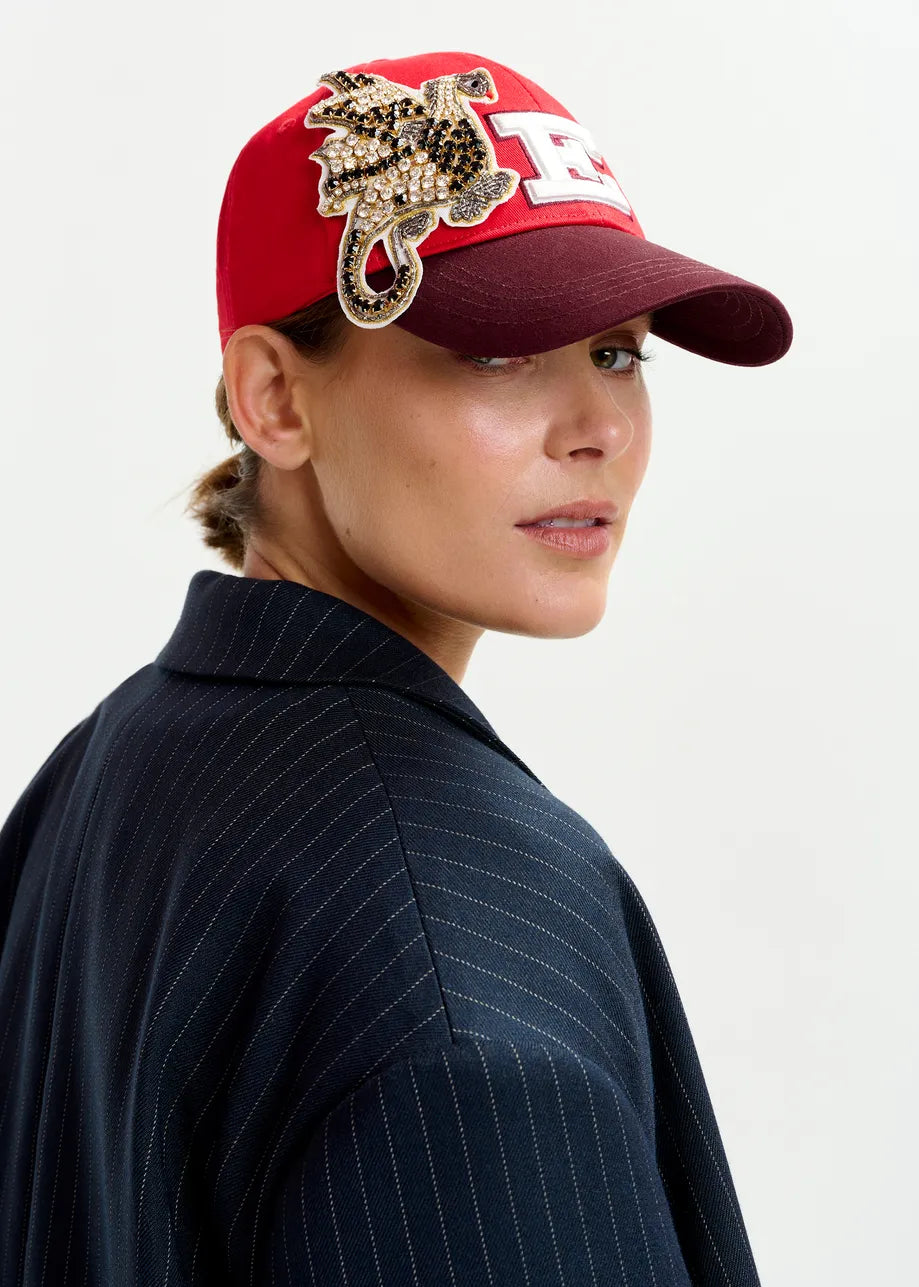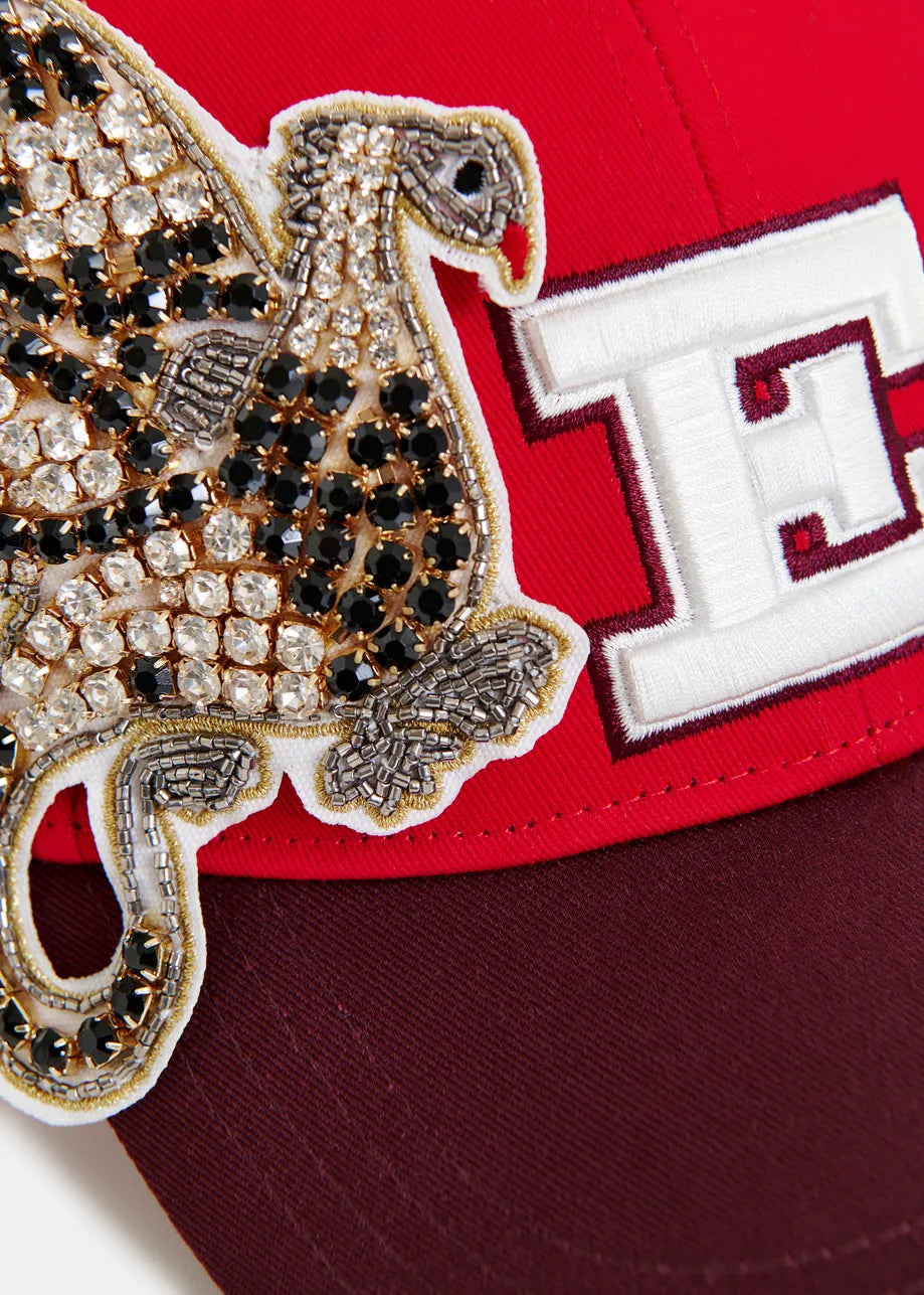 Realizzato in robusta tela di cotone, questo cappellino da baseball ricamato presenta una vistosa "E" e un'applicazione a forma di uccello impreziosita da strass sulla parte anteriore, perfetto da indossare mentre sbrighi le tue commissioni. Puoi utilizzare la chiusura in velcro regolabile presente sul retro per garantirti una calzata comoda e sicura.